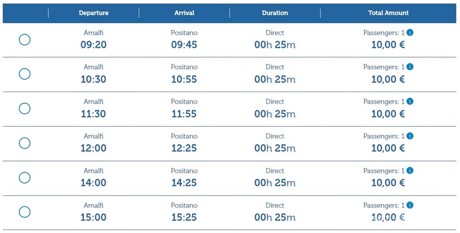 travelmar.it – Website phà phổ biến tại khu vực bờ biển Amalfi, dùng để tra cứu và đặt vé phà giữa Salerno – Amalfi – Positano (hoạt động theo mùa, chủ yếu từ tháng 4 đến tháng 10).