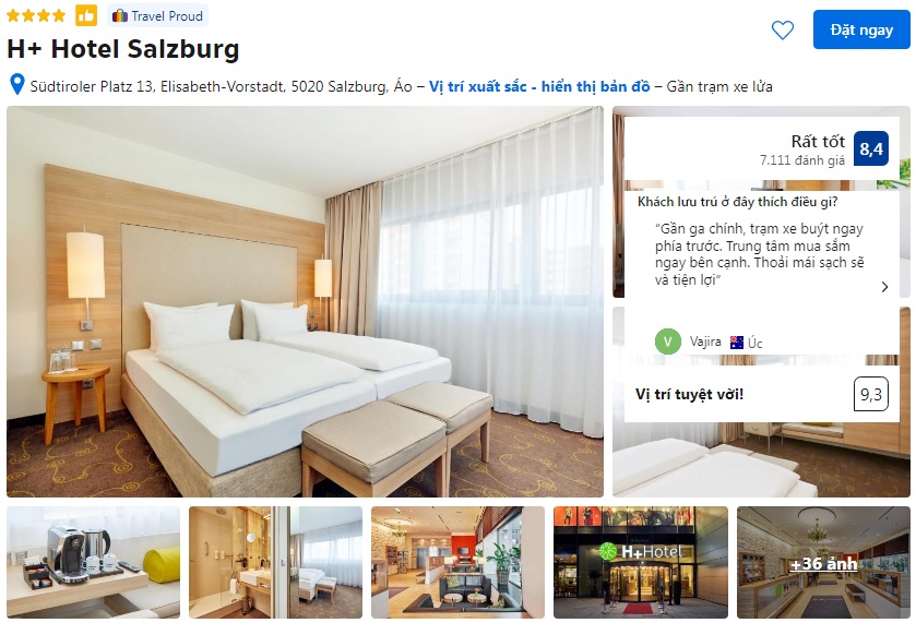 Với hành trình tham quan Hallstatt, Salzburg là điểm lưu trú thuận tiện để di chuyển. Bạn nên chọn khách sạn gần ga Salzburg Hauptbahnhof vì đây là nơi xuất phát các chuyến tàu đi Hallstatt. Khu vực quanh ga tập trung nhiều khách sạn 3–4 sao với phòng ốc tiện nghi, mức giá phổ biến khoảng €80–130/đêm. Dưới đây là một số khách sạn FunTriip gợi ý cho chuyến du lịch tự túc Hallstatt để bạn tham khảo.