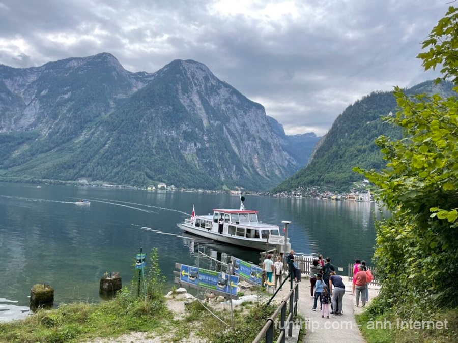 - Chặng 3: Hallstatt Bahnhof → Làng Hallstatt (đi phà): Ga Hallstatt Bahnhof nằm ở bờ đối diện làng. Ngay trước ga có bến phà, bạn đi phà qua hồ Hallstätter See để vào trung tâm làng Hallstatt. Thời gian đi phà khoảng 10 phút, lịch phà khớp với giờ tàu.