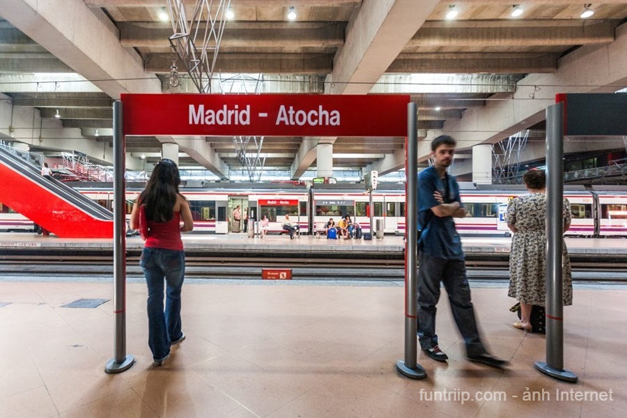 Madrid là đầu mối đường sắt quan trọng nhất Tây Ban Nha, rất thuận tiện nếu bạn di chuyển bằng tàu hỏa từ các thành phố khác. Hệ thống tàu cao tốc AVE nổi tiếng nhanh, đúng giờ và thoải mái, phù hợp cho du lịch tự túc.