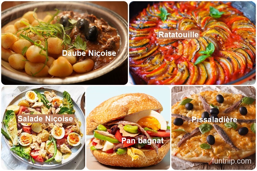 Ẩm thực Nice mang đậm phong cách Địa Trung Hải và ảnh hưởng rõ nét từ ẩm thực Ý. Các món ăn không quá cầu kỳ nhưng chú trọng hương vị tự nhiên, rất phù hợp với khí hậu nắng ấm của miền nam nước Pháp. Du khách du lịch tự túc Pháp có thể dễ dàng tìm thấy quán ăn địa phương Nice, tại khu phố cổ Vieux Nice, quanh Cours Saleya hoặc dọc Promenade des Anglais.