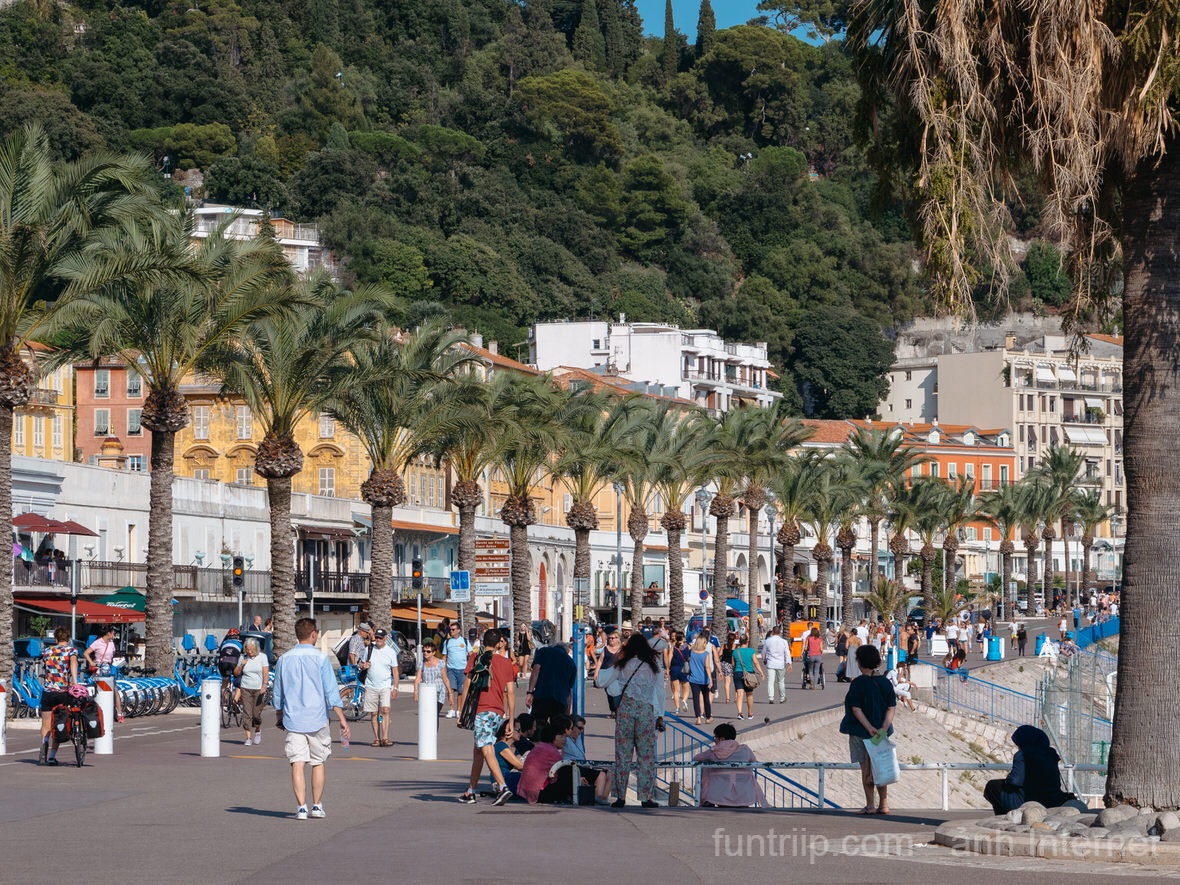 Trung tâm Nice, khu phố cổ Vieux Nice và đại lộ ven biển Promenade des Anglais nằm khá gần nhau, thuận tiện để khám phá bằng cách đi bộ. Dạo qua các con hẻm phố cổ hoặc đi dọc bờ biển là cách đơn giản để cảm nhận nhịp sống địa phương.