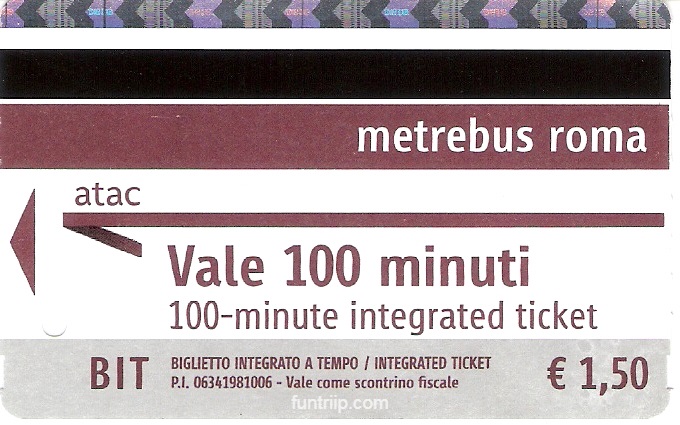 - Vé lượt (BIT – Biglietto Integrato a Tempo): Loại vé phổ biến nhất, cho phép di chuyển không giới hạn trên metro, bus và tram trong 100 phút kể từ khi kích hoạt. Giá vé €1.50. Vé cho phép chuyển tuyến giữa các phương tiện trong thời gian hiệu lực, nhưng metro chỉ được vào 1 lần. Phù hợp nếu bạn chỉ đi 1–2 chặng ngắn.