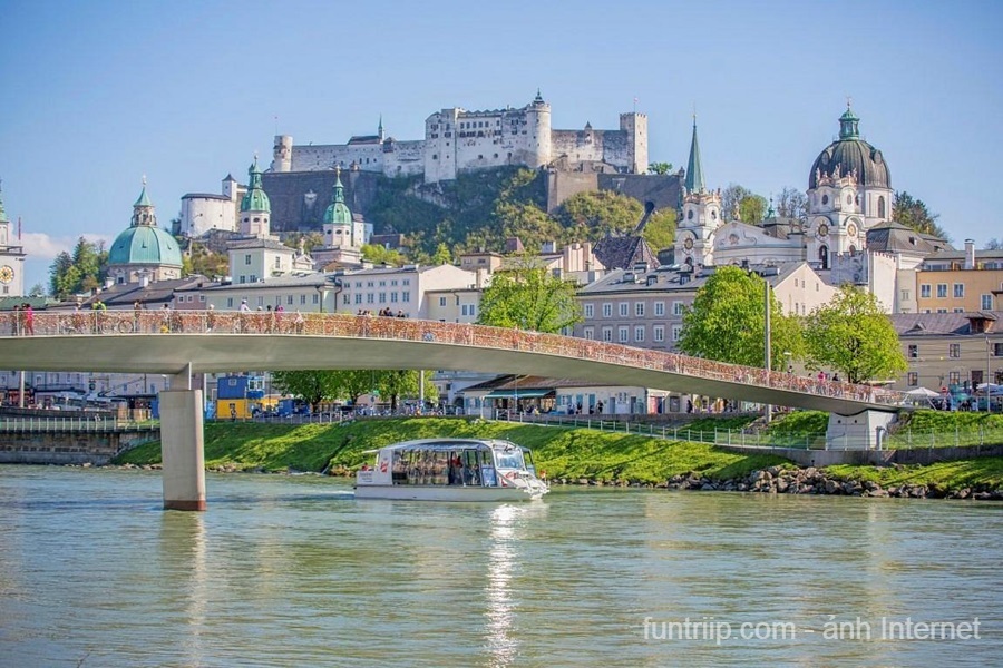 – Góc chụp đẹp: cầu Makartsteg (khóa tình yêu), view pháo đài phản chiếu trên sông.