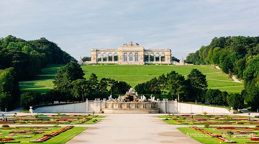 – Góc chụp đẹp: mặt tiền cung điện, đồi Gloriette nhìn toàn cảnh Vienna.