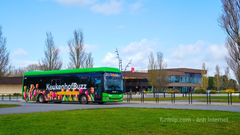 - Chặng 2: Amsterdam RAI → Keukenhof (KeukenhofBuzz 852): Từ Amsterdam RAI, bạn đi KeukenhofBuzz (bus số 852) chạy thẳng đến cổng Keukenhof. Thời gian di chuyển khoảng 35 phút, xuống ngay trước cổng vườn hoa. Bus chỉ hoạt động trong mùa Keukenhof mở cửa (cuối tháng 3 – giữa tháng 5).